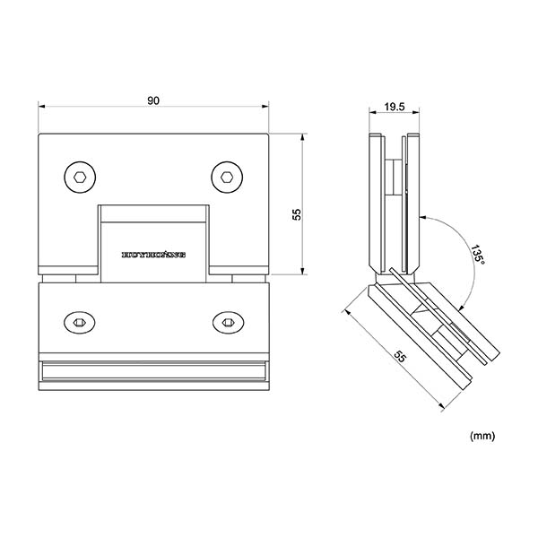 - Sản phẩm bản lề kính-kinh 135 nằm trong nhóm các sản phẩm dành cho cửa kính phòng tắm của Huy Hoàng. Sản phẩm được dùng kết hợp với các sản phẩm kẹp vách và phụ kiện treo của Huy Hoàng.