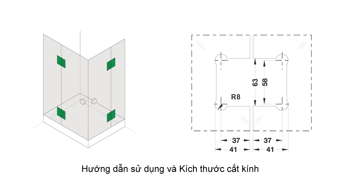 - Sử dụng thích hợp cho các loại cửa kính phòng tắm có chiều dày từ 8-12mm.