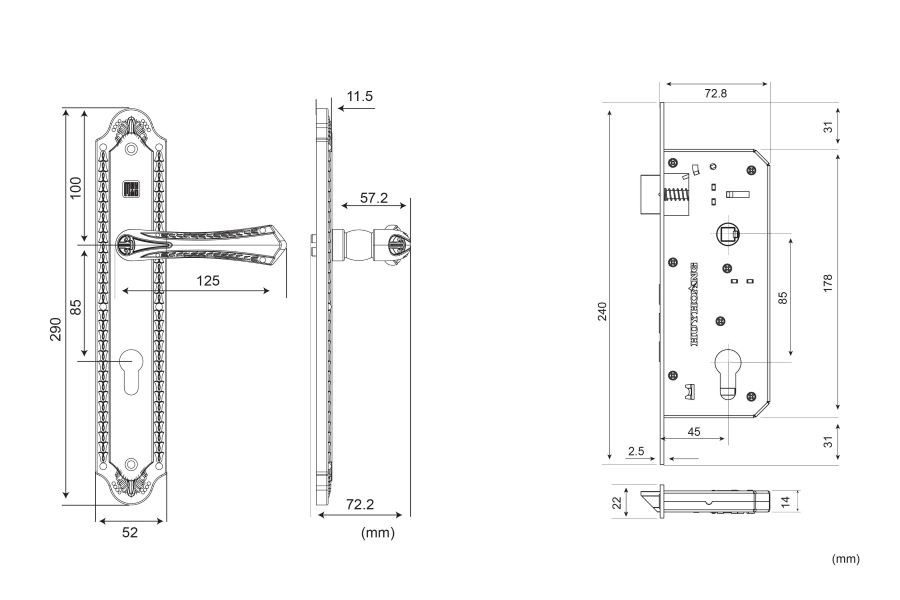 - Thân khóa được sản xuất bằng tôn thép với độ dày 1,5mm, được phủ một lớp sơn tĩnh điện.