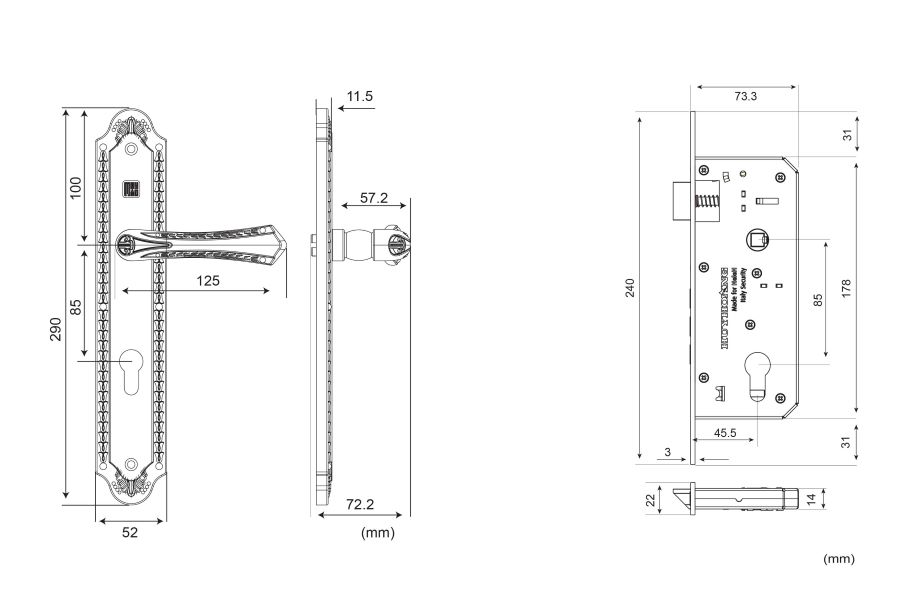 - Thân khóa làm từ Inox. Các chi tiết khác bên trong thân khóa được làm bằng tôn thép mạ Zn theo tiêu chuẩn quốc tế.
