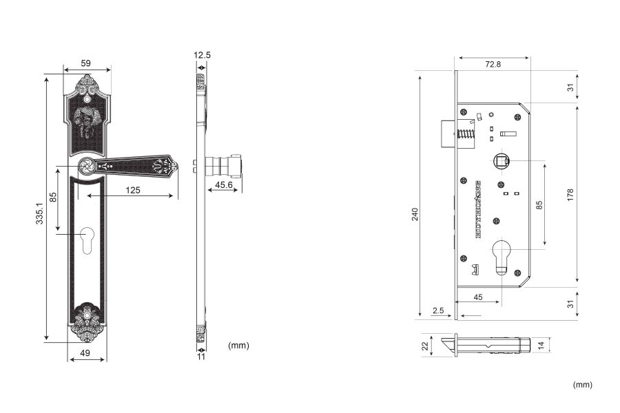 • Thân khóa được sản xuất bằng tôn thép với độ dày 1,5mm, được phủ một lớp sơn tĩnh điện.