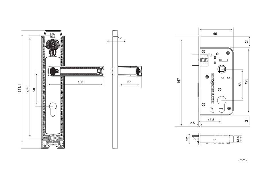 - Ổ khóa làm bằng đồng vàng (đồng thau), được thiết kế chìa vi tính (7 bi) tránh bị trùng chìa, rất an toàn.