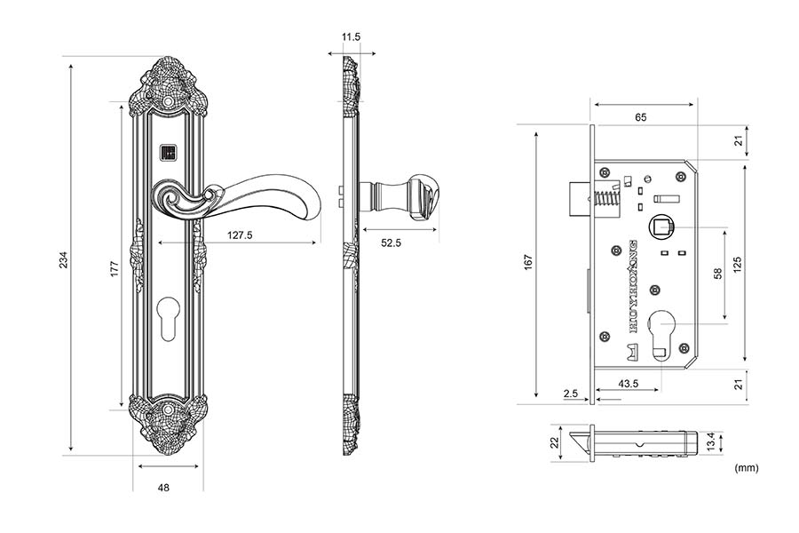 - Ổ khóa làm bằng đồng vàng (đồng thau), được thiết kế chìa vi tính (7 bi) tránh bị trùng chìa, rất an toàn.