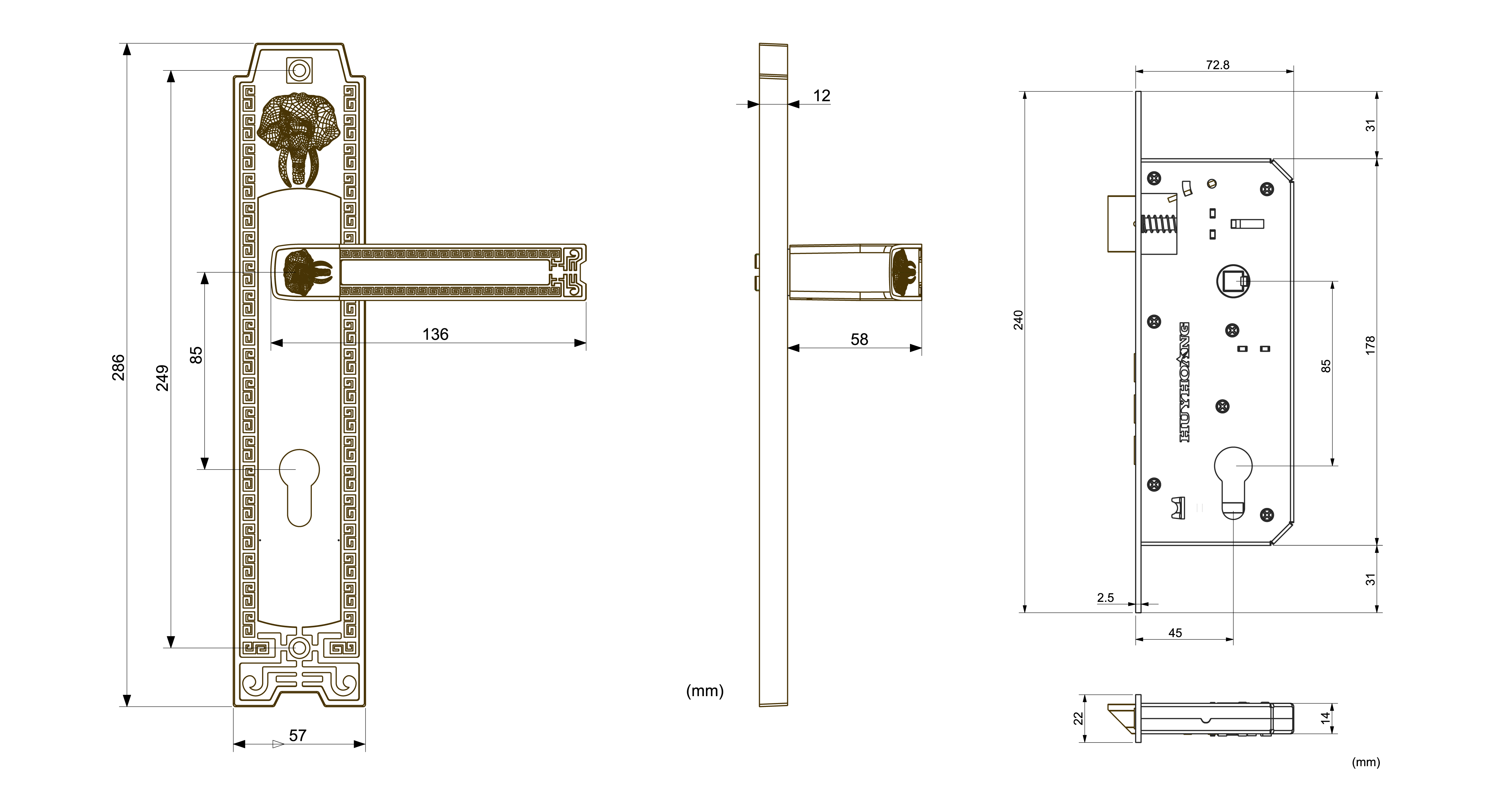 - Tay ốp khóa sản xuất bằng vật liệu đồng vàng (đồng thau).