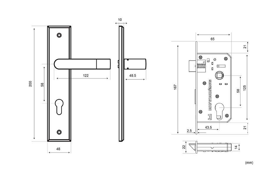 - Tay ốp khóa được sản xuất bằng hợp kim ZDC-2, mạ bạc ti tan.