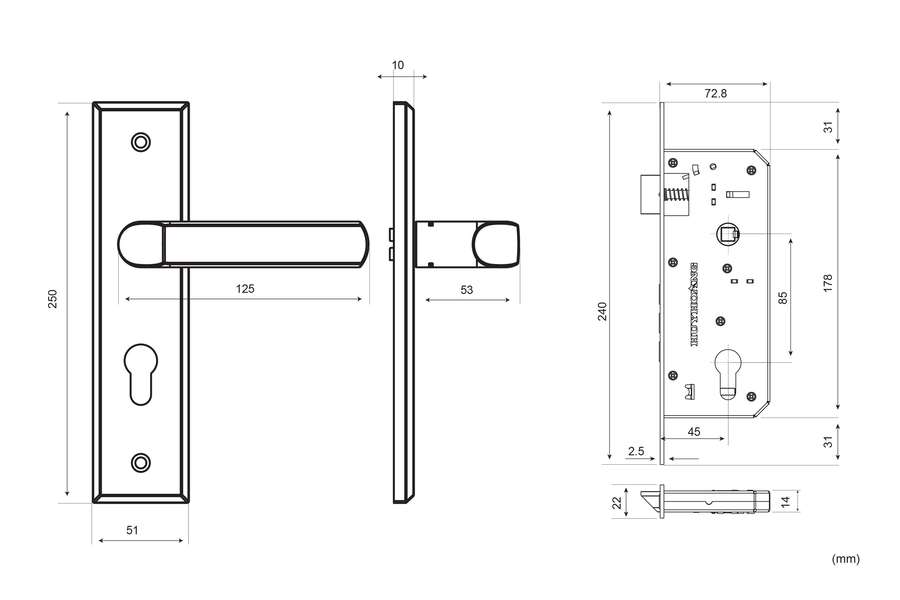 - Tay ốp khóa được sản xuất bằng hợp kim ZDC-2, mạ Ni + Cr.