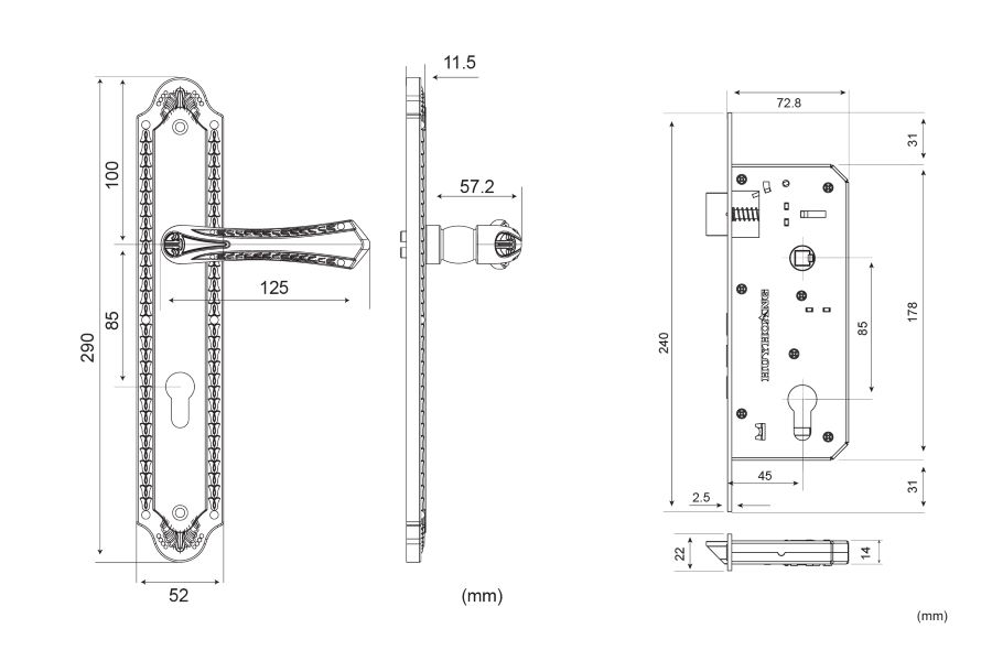 - Tay ốp khóa được sản xuất bằng hợp kim ZDC-2, mạ đồng giả cổ.