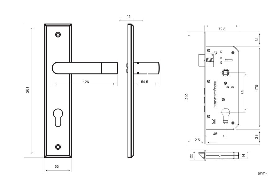 - Thân khóa được sản xuất bằng tôn thép với độ dày 1,5mm được phủ một lớp sơn tĩnh điện.