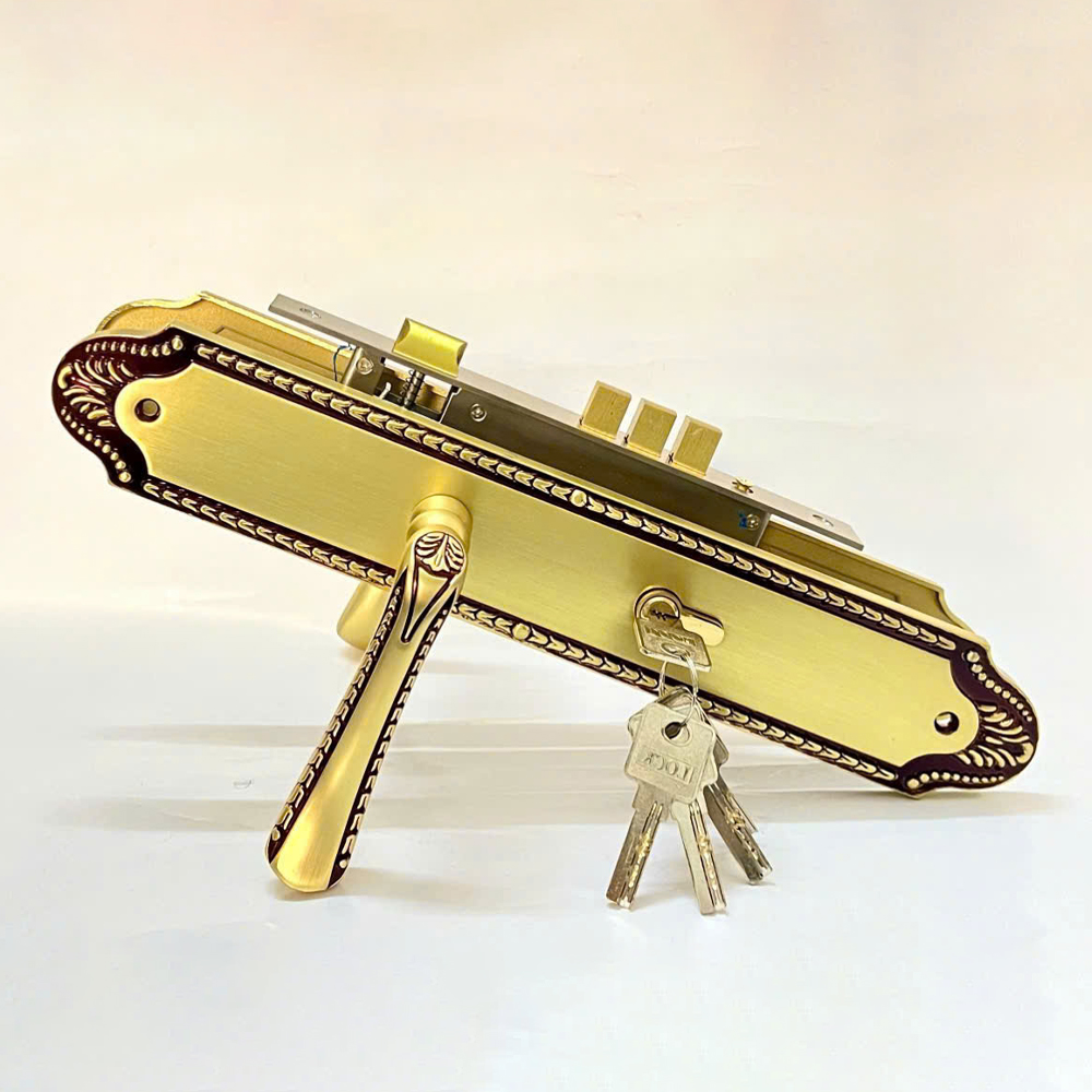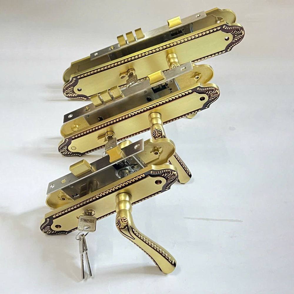 Chất liệu Tay nắm hợp kim kẽm, thân khóa inox có chốt lẫy bằng đồng thau