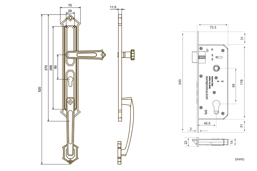 • Tay ốp khóa bằng đồng mạ PVD Gold của Huy Hoàng được thiết kế và sản xuất bởi thương hiệu Pasini – Made in Italy.