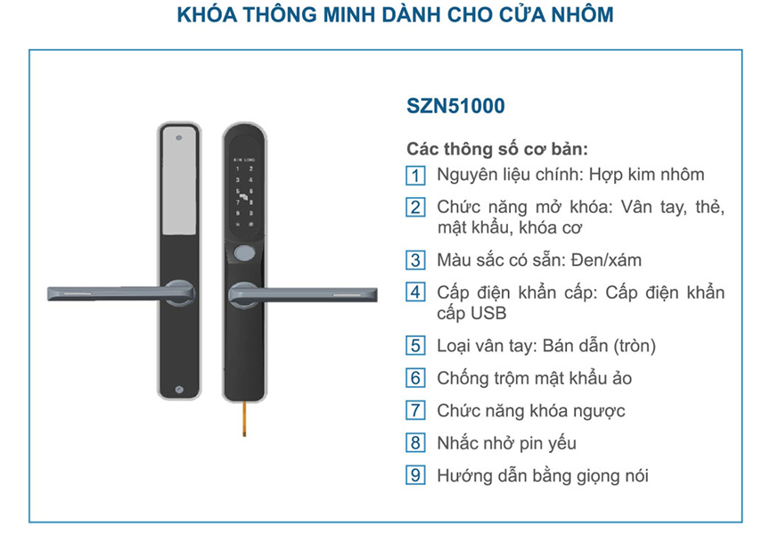 Đây là bộ khóa điện tử hãng Kinlong sử dụng cho cửa nhôm Xingfa và một số loại cửa nhôm cao cấp khác. Bộ khóa này có 4 phương thức mở khóa đó chính là vân tay, mật khẩu, thẻ từ và chìa khóa cơ. Bộ khóa này có chức năng khóa ngược nên có thể sử dụng cả thân khóa đơn điểm và đa điểm.