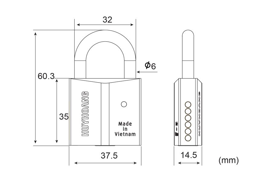 - Sản phẩm khóa treo bấm 6 có vỏ khóa làm bằng hợp kim Titanium an toàn cho môi trường và người sử dụng.