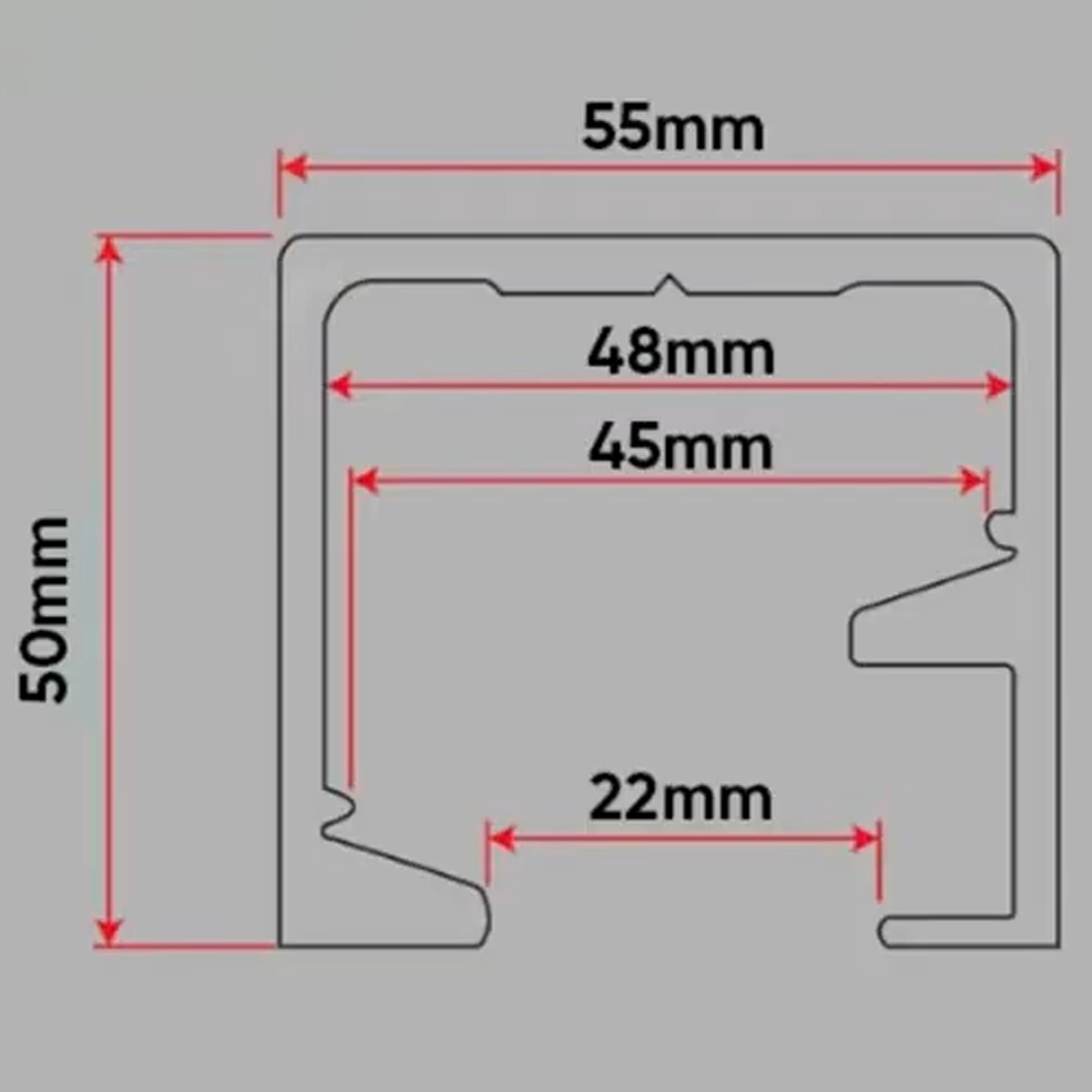 Chức năng | Làm ray treo cho cửa lùa xếp trượt, cửa trượt gấp, cửa xếp, vách ngăn xếp từ 30 – 50mm |
