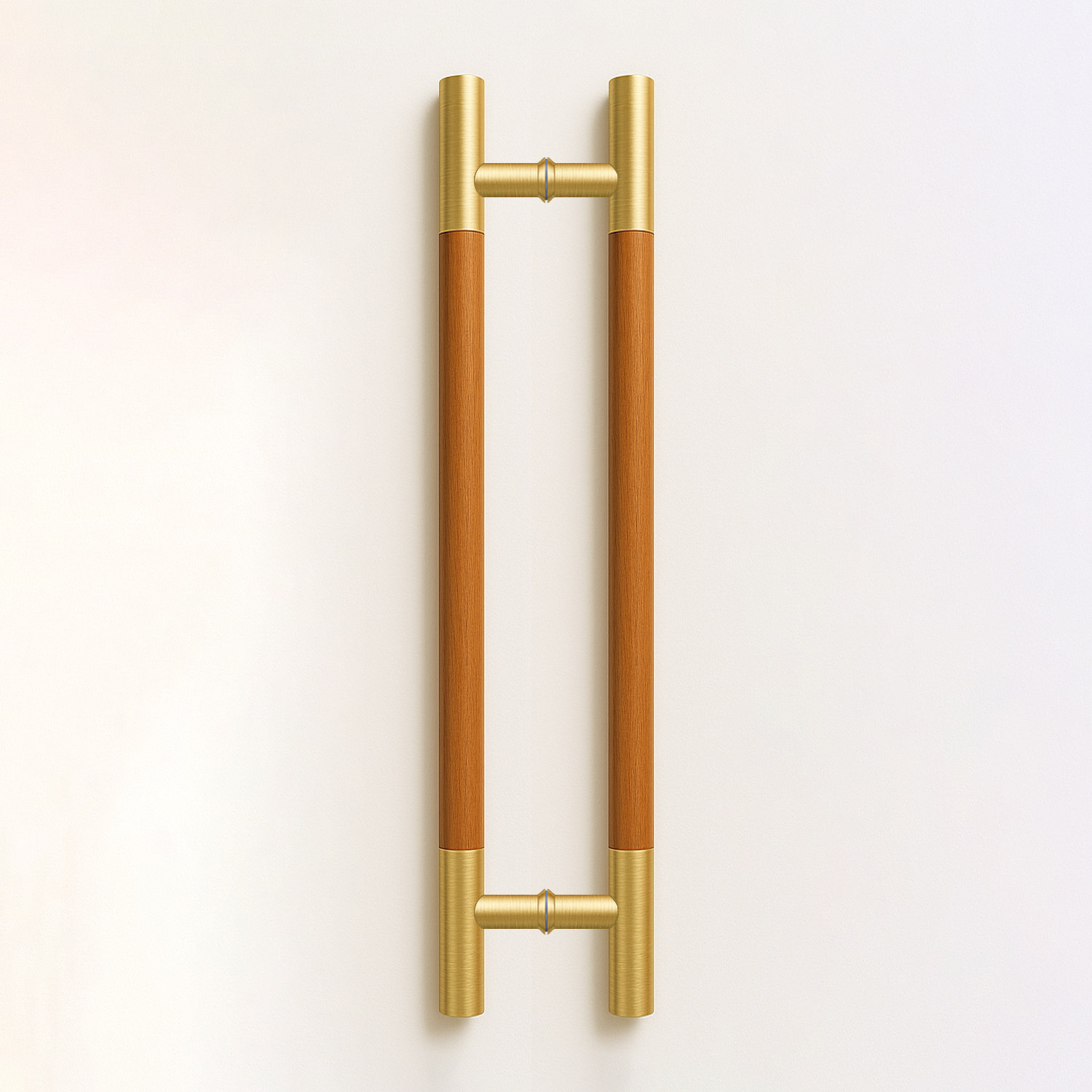 Đầu inox vàng xước mờ, thân gỗ vân gỗ tự nhiên, sơn PU bóng phủ. |