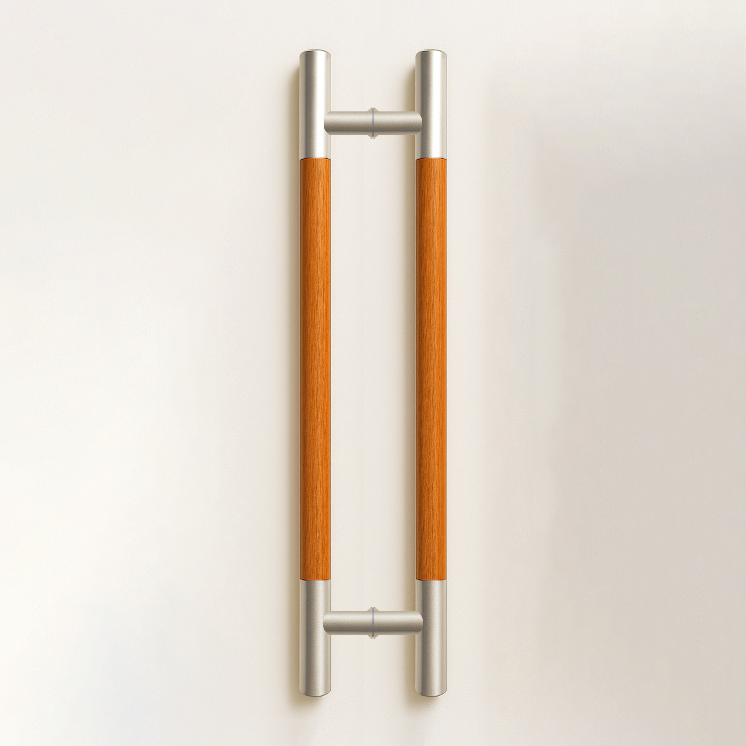 Đầu inox xước mờ, thân gỗ vân gỗ tự nhiên, sơn PU bóng phủ. |