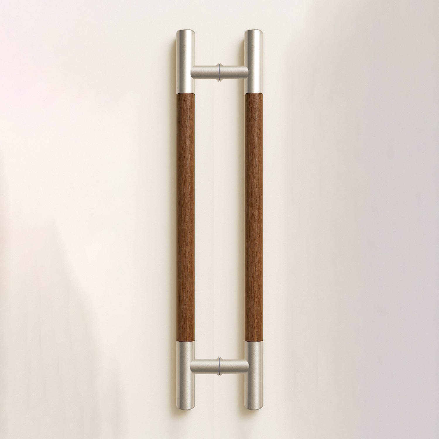 Đầu inox xước mờ, thân gỗ vân gỗ tự nhiên, sơn PU bóng phủ. |
