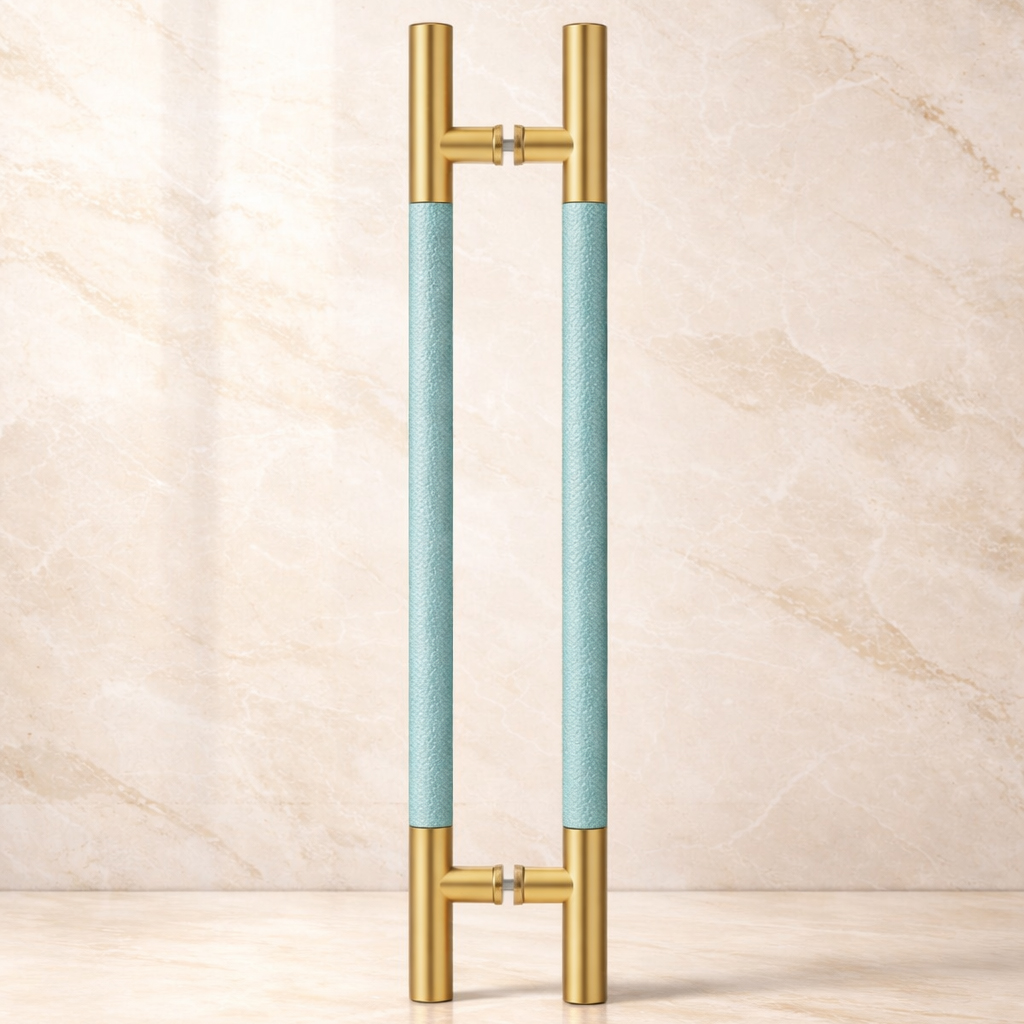 Tay nắm cửa TN147 Inox 304 ø38 bọc xanh lơ